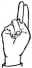 На ћирилици написано АЛЕН СОВИЉ састоји се из 9 слова [?]. Исписано ћириличном једноручном азбуком за глувонеме: